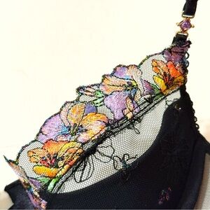 • sheer mesh underwire push-up cups with beautiful colorful floral embroidery lace trim