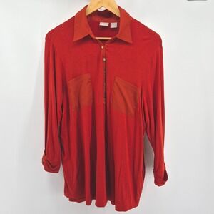 Chicos Burnt Orange Long Sleeve Collared Henley Shirt Women's Size 3/XL Career