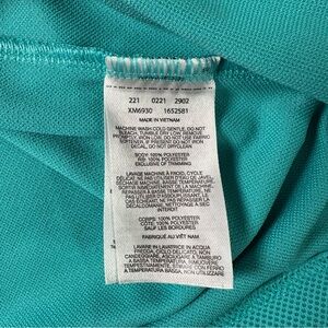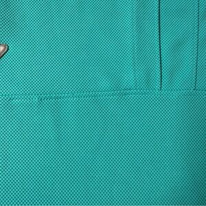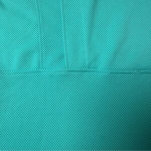 Stylish and comfortable aqua polo. Ideal for casual wear. Features classic collar and short sleeves. Has some threading loose on the back as shown in photos.