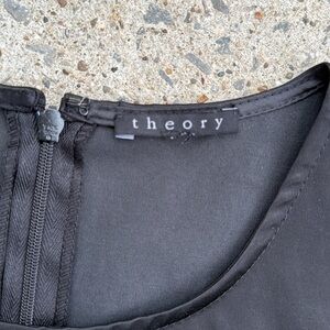 Theory Brynne “New Tuxedo” Black Satin Sleeveless Shift Dress Size 6