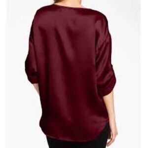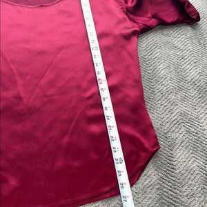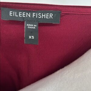 EILEEN FISHER Silk Satin Dark Tulip Hammered Ballet Neck Top Blouse XS $218