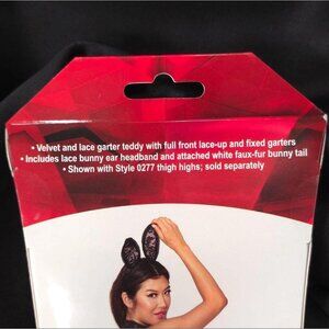 Bunny Teddy Lingerie Black Lace Velvet Costume with Ears Tail Dreamgirl One Size