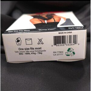 Bring your fantasies to life with the Bunny Vixen teddy by Dreamgirl. This sensual one-piece lingerie features a velvet and lace bodice with lace-up front detail, sheer mesh back, and fixed garters. The set includes a matching lace bunny ear headband and an adorable white faux-fur tail.