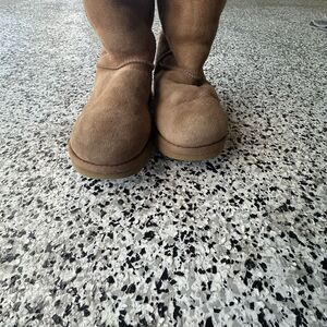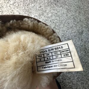 color discoloration spot on the right bootUgg Classic Tall Boots Womens 6 Chestnut Suede Sheepskin Shearling 5815 Fur