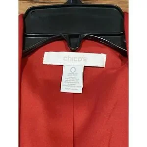 Chico's Open Front Blazer Red Collarless Structured Jacket Women's Size 0