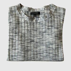 This stylish, ribbed sweater, crafted from 100% merino wool, offers luxurious comfort and timeless appeal. Perfect for layering, its soft texture and classic design make it a staple for every wardrobe. Size: Medium Measurements: PTP - 17"; Length 24" Colour: Grey & Black Fabric: 100% Merino Wool Additional Notes: New without tags. Non-smoker & pet free home.
