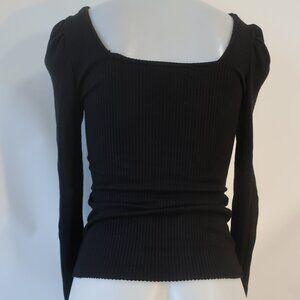 Womens The Range (Item- 120) Black Ribbed Square Neck Puff Sleeve Blouse Top S