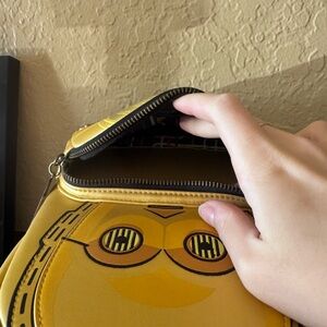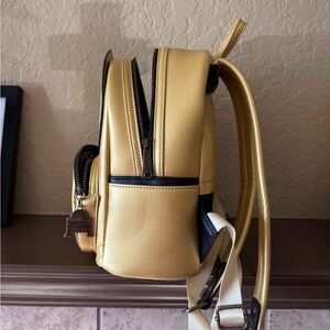 Gold backpack with C-3PO design. Perfect for Star Wars fans.