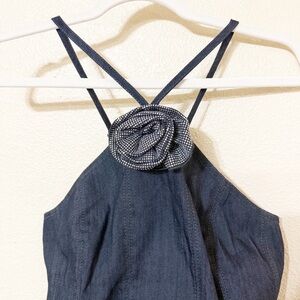 NWT Cinq a Sept Odetta Denim Jean Halter Dress Rhinestone Flower in Indigo