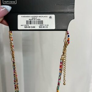 Chic multi layered necklace with vibrant multicolor beads and gold chains. Pedants include All seeing eye, heart and sun ☀️.