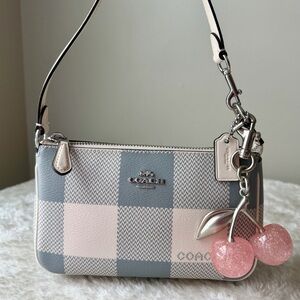 Coach Nolita 19 bag purse in buffalo plaid chalk / gray with pink cherry charm