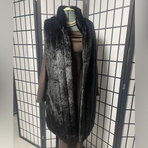 NWT Donna Salyer Fabulous Furs black mink faux fur knee length stroller Vest