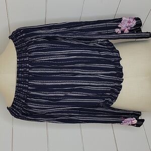 Xhilaration medium navy blue off shoulder top with embroidered flowers at wrists