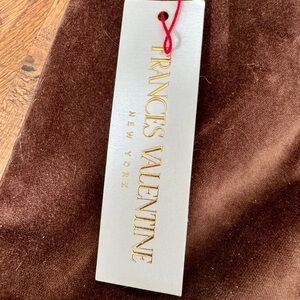 Elevate your wardrobe with these luxurious Frances Valentine pants in a rich chocolate brown hue. Crafted from plush velvet fabric with a touch of stretch, these ankle-length pants offer both comfort and elegance. The pants are designed for plus-size women, with a size 18 waistline, and feature a flattering silhouette that accentuates your curves.