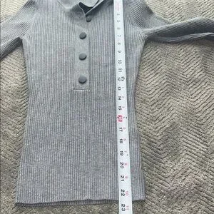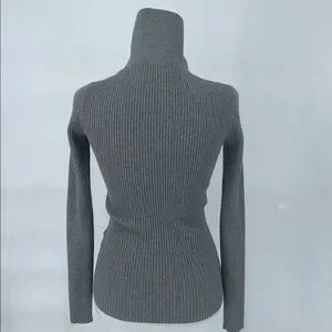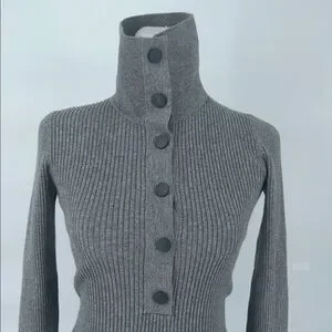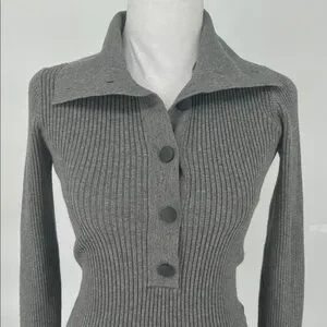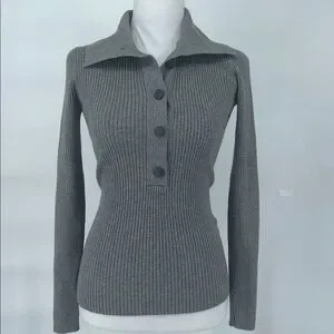 Reiss Grey Ribbed Knit Polo Top Button Front Long Sleeve Size S