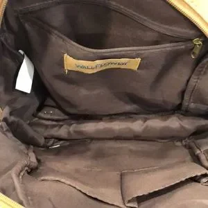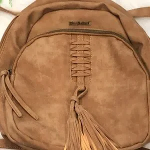 A tan Wallflower backpack, 12” x 12”, has a small black mark (please see photos) otherwise in good preowned condition.