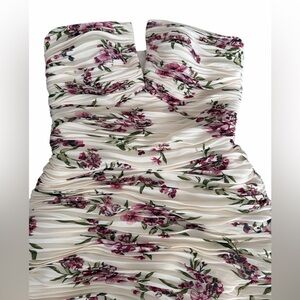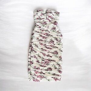 BCBGMaxAzria Strapless Dress in Cream and Pink Floral