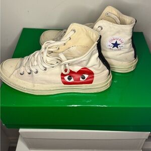 Comme des Garçon Play White High-Top Sneakers wit Red Heart sold as is size 9US