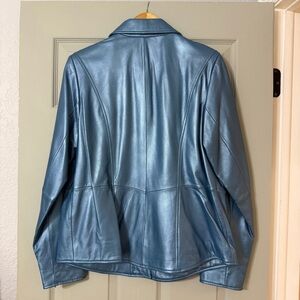 Y2K Metallic Blue Pearl Genuine Leather Blazer Jacket | Size L | Sex & the City