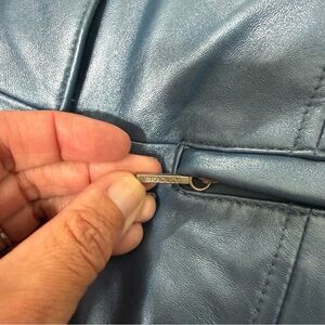 Make a statement in this Bradley Bayou genuine leather metallic blue pearl blazer jacket — a standout piece that’s part edgy, part glam, and all effortlessly cool. This metallic leather jacket has serious Sex and the City energy — the kind of bold, tailored statement piece seen on Carrie Bradshaw and Samantha Jones during the late ’90s / early 2000s era.