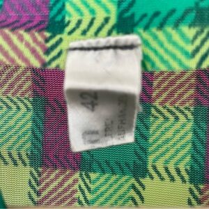 The size tag says 42. Google says that is similar to a size 10/12 but I think vintage size 10/12 is a little smaller than todays' size 10/12. I'm listing this as a size M but please review measurments for fit. The tag says "nylon".
