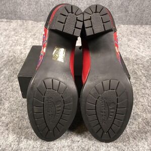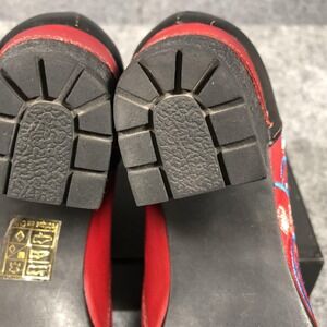 Color: Red and black leather upper with multicolor embroidered mandala floral design.