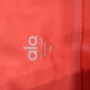 Alo yoga goddess women's neon orange and gray leggins with rouching bottom size M,preowned great condition from pet and smoke free home.