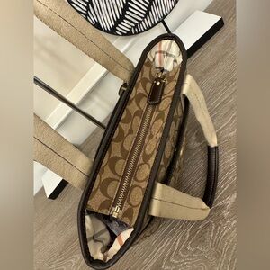 Elevate your style with the Coach Signature Brown Tote Bag. This elegant bag features a classic brown design, perfect for any occasion. Experience the luxury and craftsmanship of Coach.