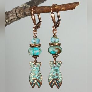 HAND CRAFTED Boho Turquoise Copper Fish Dangle Earrings