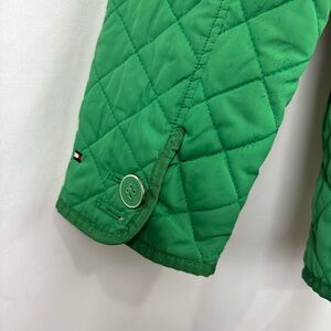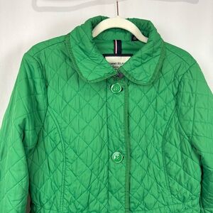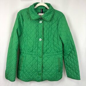 Tommy Hilfiger Women’s L Green Quilted Coat Classic Jacket Waist Tie Full Zip