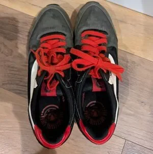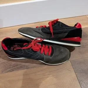 Chic sneakers with a bold black and red design. Features a sleek silhouette and comfortable fit. Ideal for everyday wear.