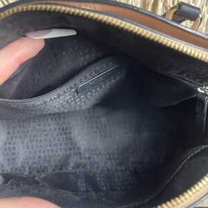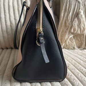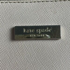 Chic Kate Spade bag. Ivory texture with metallic logo accent. Perfect for any occasion.