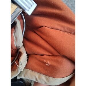 In good pre owned condition - missing second to lowest snap, has some discoloration one cuff, as well as a wear spot on the hood - see photos 3 and 4. --