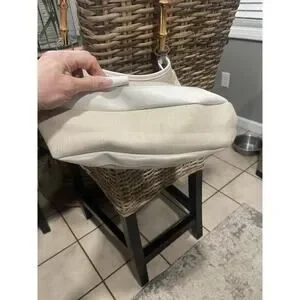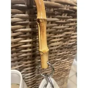 This Ann Taylor Loft top handle bag is perfect for any casual occasion. The woven bamboo exterior provides a natural and vintage look, while the magnetic closure ensures your belongings stay secure. The bag measures 13 inches in width, 7 inches in height, and 7 inches in depth, with a 3 inch handle drop.