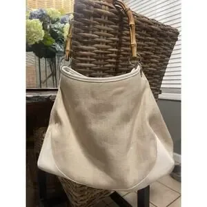 Ann Taylor Loft Bamboo Handle Woven Purse w/natural, Tan Vintage LOFT
