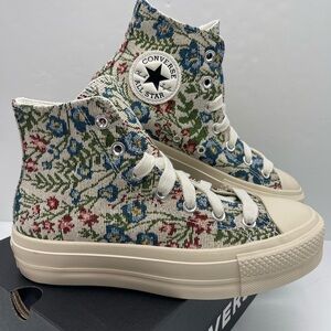 Converse WMNS Floral High-Top CTAS LIFT HI EGRET/NATURAL IVORY Platform Sneakers