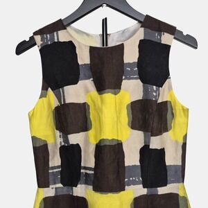 Kate Spade Womens Size 4 Della Sheath in Yellow Black Geo Square Cotton Silk