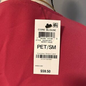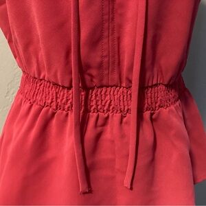 New with tags, Super cute pink Alfani v-neck take top. Has a smocked stretchy waistband. Pit to pit is 19 inches and 23 inches in length from the shoulder. This is great for spring. Made of 100% of polyester. Machine washable.