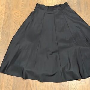 Onyx Nite medium Black Midi A Line skirt. Material feels like taffeta. Waist is a Flat front, elastic on back w side zipper. Underneath black crinoline to add fullness to skirt.