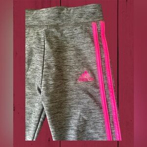 EUC Girls Charcoal Grey with Fuchsia Pink Adidas 3 stripes logo on both sides Athletic Leggings in XS (6/6X)