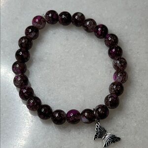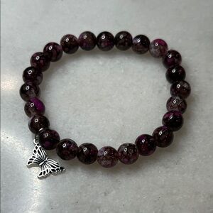 This elegant bracelet features rich purple beads and a delicate silver charm, perfect for adding a touch of sophistication to any outfit.