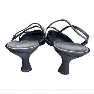Black sateen upper, leather soles
