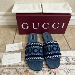 New authentic Gucci Jane Slide denim Sandal size 37.5