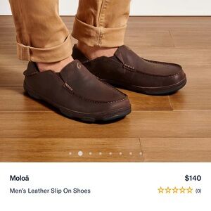 New men’s OluKai “Moloa” slip ons. Husband received as a gift but they aren’t his style so he never wore them. They do have some light scuffs, a natural quality with the type of leather they are made of.