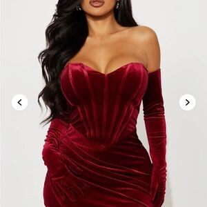 Stunning strapless velvet dress. Rich burgundy color. Perfect for elegant evenings.