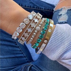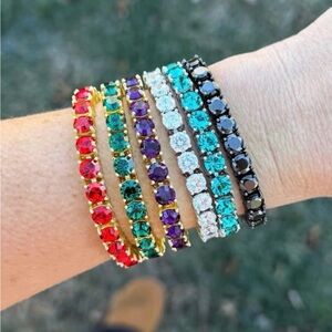 Your new signature sparkle. This must-have tennis bracelet features a sleek row of crystals or CZs that shimmer with every move. With color options like silver, emerala, red, turquoise, jet, and amethyst, it's the versatile statement that instantly elevates any wrist stack. 7"+2"