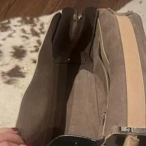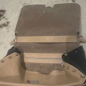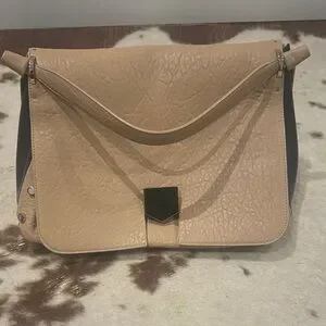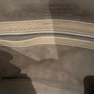 Jimmy Choo Leather Shoulder Bag | Beige & Black | Silver Hardware