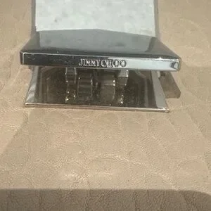 Jimmy Choo Lockett bag. In grainy tan leather. Premium condition. Soft suede lining, detachable strap, push lock closure with original plastic protection still on, studs decoration throughout.