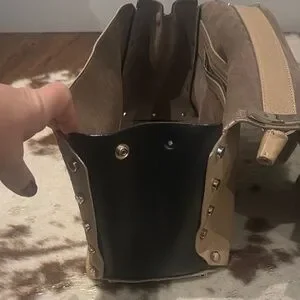 One small side grommet/rivet is missing (see photo). Leather is intact with no tearing. This is a simple cosmetic fix that any shoe repair or cobbler can replace for a few dollars.