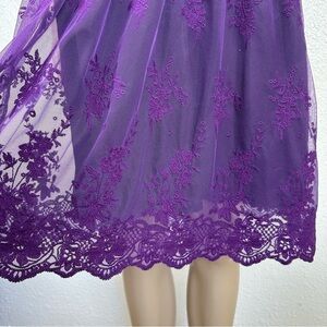 Kensie purple Dress Lace Overlay Fit & Flare Party Whimsigoth Fairy Goth sheer L